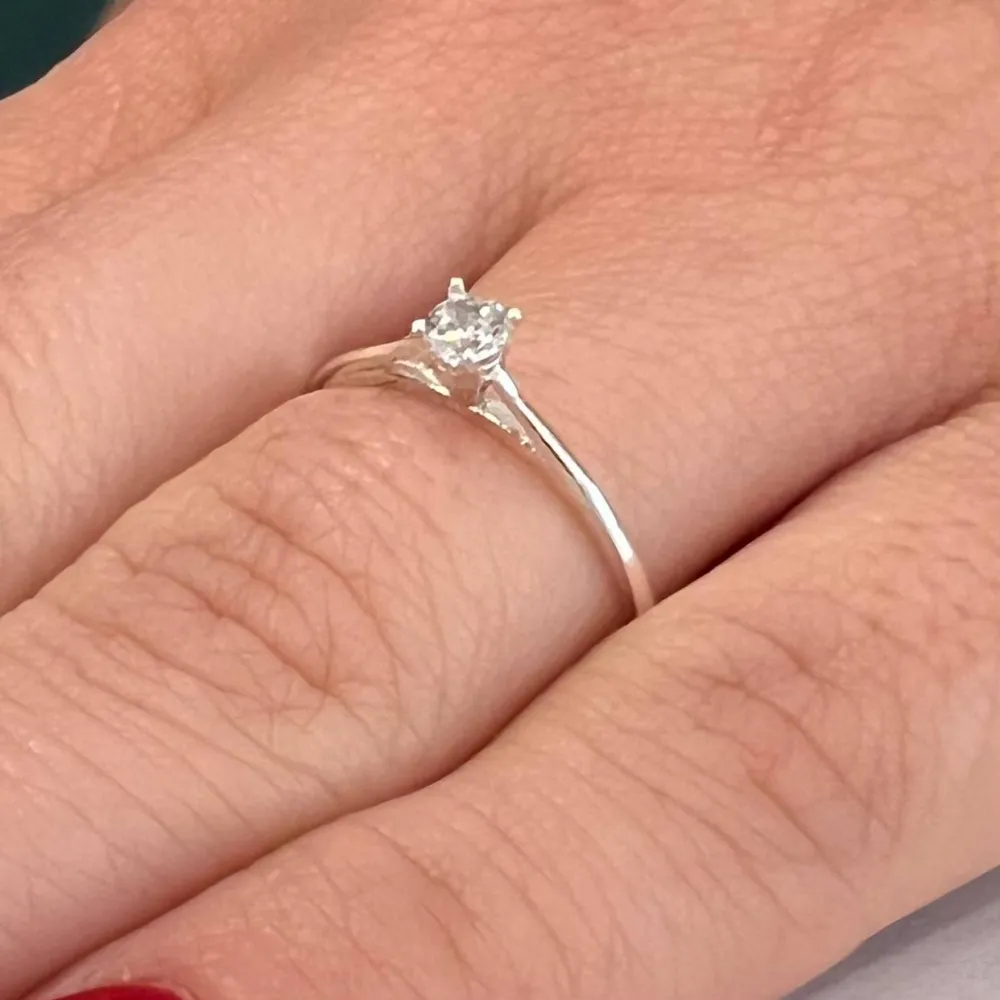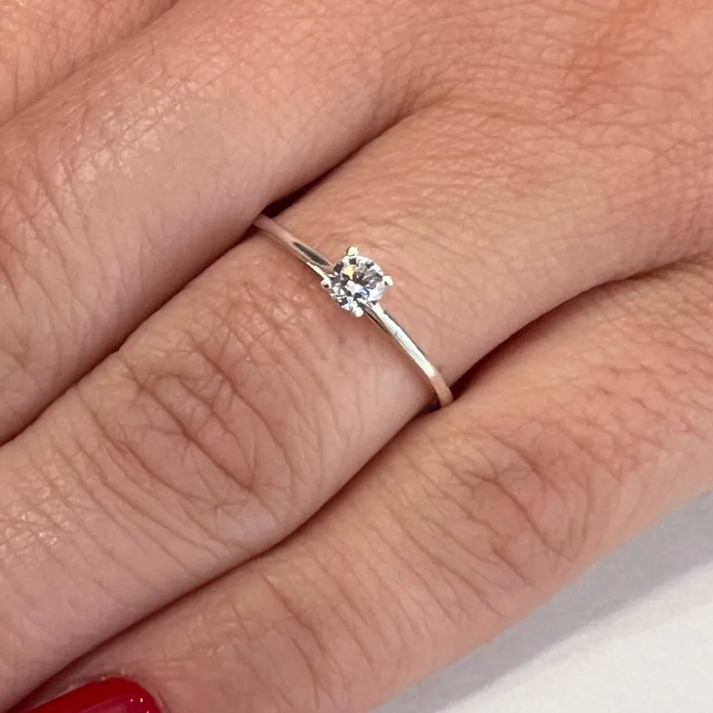 Anel de prata 950, solitário com zirconia
