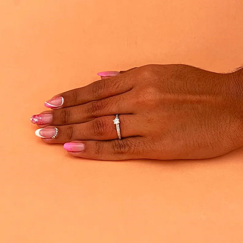 Anel de prata 950, noivado com pedras de zircônia