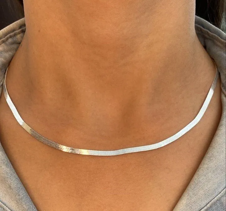 Gargantilha ômega laminada de prata com 40 cm